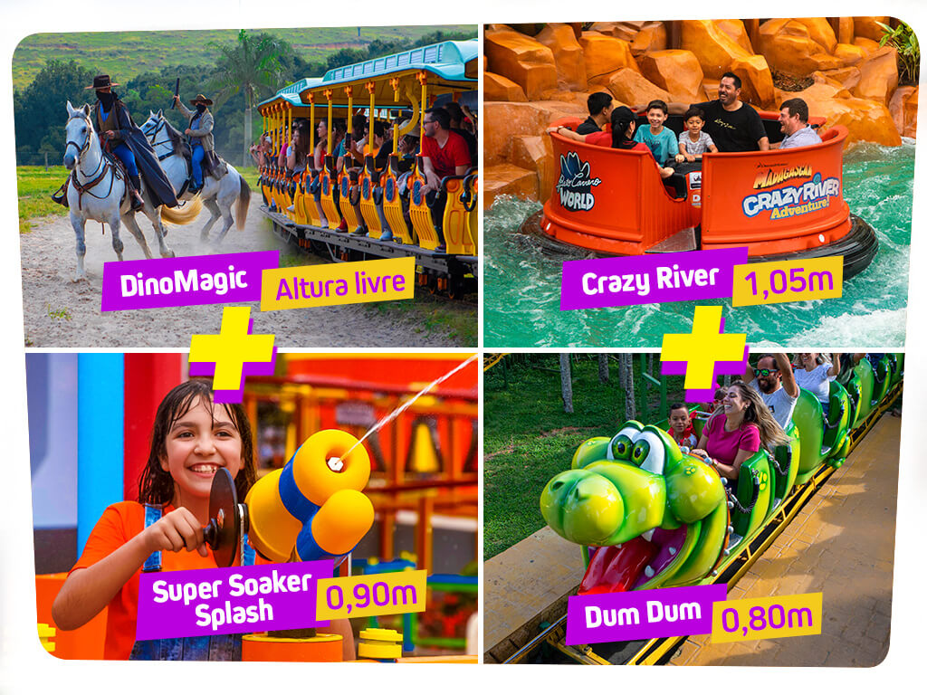 • Confira abaixo as 04 atrações que aceitam Family Pass e as respectivas alturas mínimas permitidas para a entrada nos brinquedos: